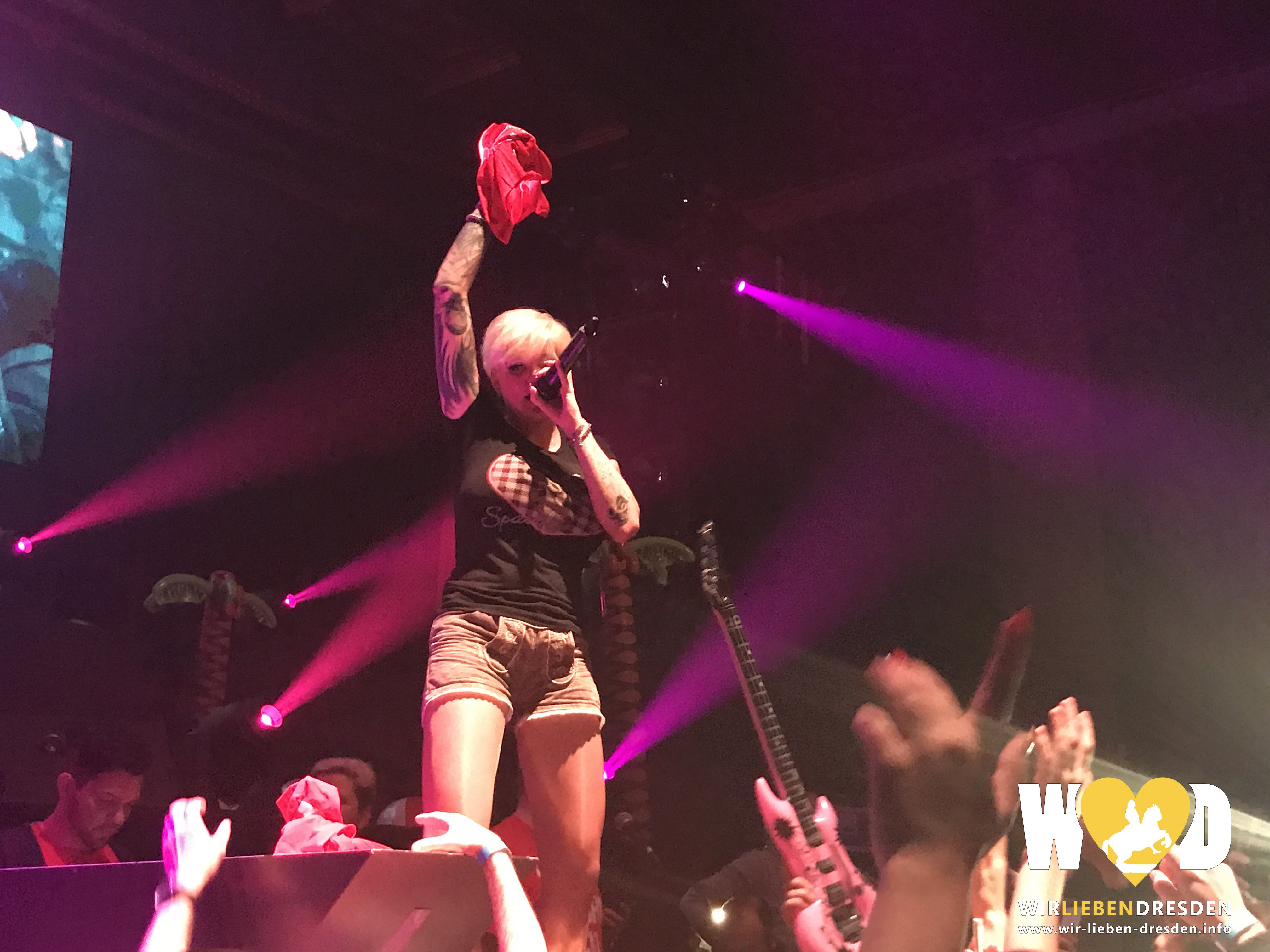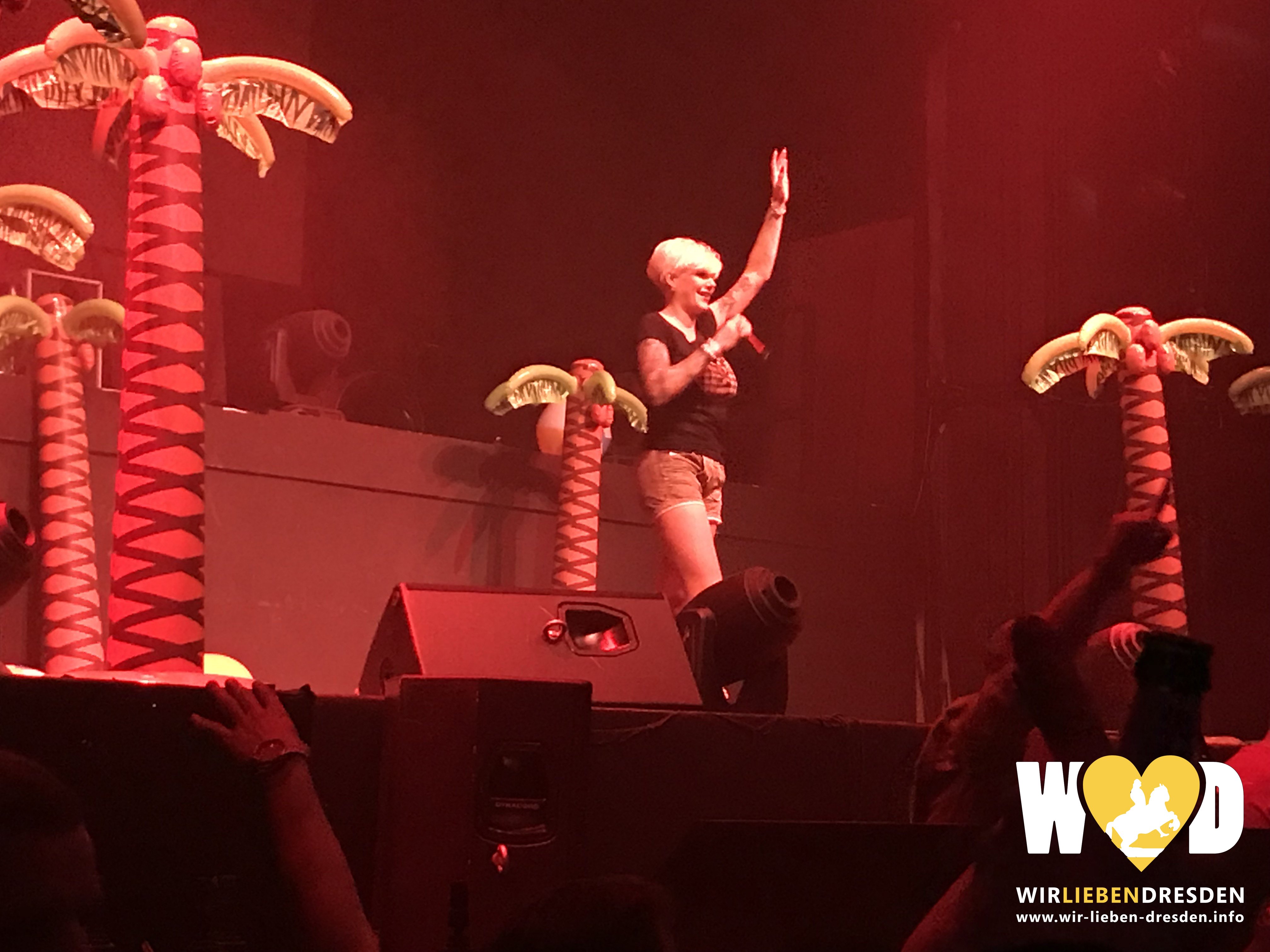 Highlight und somit der Höhepunkt der Partynacht waren die Auftritte von Dschungelkönigin Melanie Müller und Markus Becker. Gegen 0:30 Uhr hieß es dann .. „Wer sich nicht erinnert, der war nicht dabei“ oder „Dieses Leben ist geil“. So brachte die frisch gebackene Mama ihre Fans zum Feiern. Im „Dynamoland“, wie Melanie es nannte, feiert es sich doch am besten. „Heimat ist eben Heimat und wir Sachsen können nun mal am geilsten feiern“. Tja, was will man dazu noch sagen. Wo sie recht hat, hat sie recht.